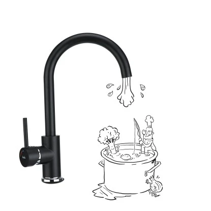 Die baliv Küchenarmatur KI-1831 fällt mit ihrem hohen und gebogenen Auslauf direkt ins Auge. Ihr edles und zeitloses Design in Schwarz passt zu sämtlichen Küchenstilen. Und dank nützlicher Extras verschafft dir die Armatur noch mehr Erleichterung in deiner Küche. Das Spülbecken zu reinigen oder bequem dein Geschirr abzuwaschen, geht mit der schwenkbaren Armatur ganz leicht. Den Auslauf kannst du um ganze 360° drehen. Und durch die Kaltstart-Funktion sparst du Energie, da nur dann warmes Wasser verwendet wird, wenn es wirklich gewünscht wird.