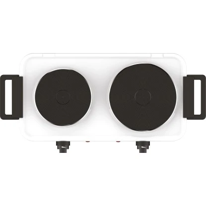 Das 2er Kochfeld dient zur schnellen Erwärmung von Speisen oder Heißgetränken in geeigneten Töpfen. Es ist mit zwei unterschiedlich großen Kochplatten ausgestattet, die einen Ø von 155 mm und 185 mm besitzen. Dabei steuern Thermostatregler mit je fünf Leistungsstufen die Wärmeabgabe. Insgesamt stellt das Kochfeld eine Leistung von bis zu 2.500 W zur Verfügung. Weiterhin ist die Heizplatte mit einem Überhitzungsschutz sowie Kontrollleuchten ausgerüstet, welche den Betrieb anzeigen. Durch die Anti-Rutsch-Gummifüße steht die Elektroplatte sicher auf einer ebenen Fläche, ohne wegzurutschen. Für eine einfache Handhabung oder den mobilen Einsatz verfügt sie über praktische Griffe an den Schmalseiten.