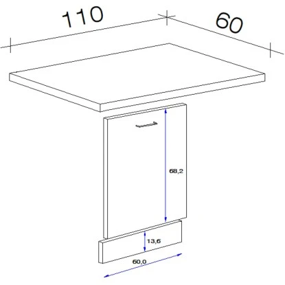 Das Geschirrspüler-Paket verfügt neben einer Frontblende mit Bügelgriff für einen vollintegrierten Geschirrspüler und einer 60 cm breite Sockelblende auch über eine 110 cm breite Arbeitsplatte.