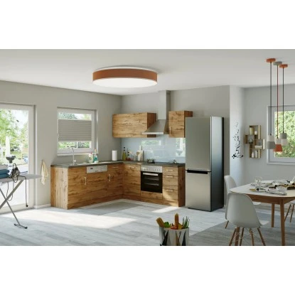Die Küchenserie Sorrento besticht durch ihre 4 absolut trendstarken Dekorkombinationen, in denen immer das ausdrucksstarke Eichedekor eine entscheidende Rolle spielt. Durch eine Vielzahl an Zeilen- und Winkelkombinationen, die außerdem durch eine große Auswahl an Ergänzungsmöbeln komplettiert werden, ergibt sich ein breites Spektrum an Einrichtungsmöglichkeiten. Möchten Sie Ihren Backofen lieber autark in einem Hochschrank untergebracht haben? Benötigen Sie einen großzügigen Kühlschrank mit integriertem Gefrierschrank? Lagern Sie Ihre Vorräte gern in Auszügen und Apothekerschränken? Alle Schränke sind flexibel aufzustellen und die Türen sind wahlweise rechts oder links montierbar. Entscheiden Sie selbst- hier bleiben keine Wünsche offen.