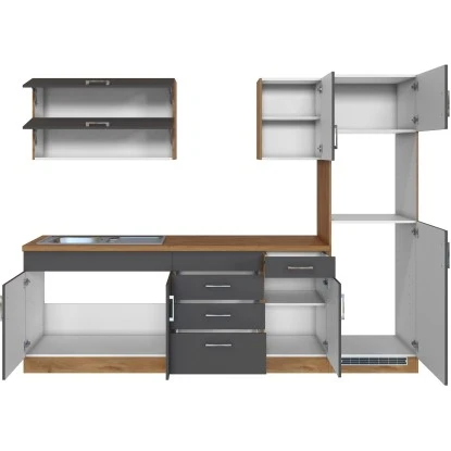 Die Küchenserie Sorrento besticht durch ihre 4 absolut trendstarken Dekorkombinationen, in denen immer das ausdrucksstarke Eichedekor eine entscheidende Rolle spielt. Durch eine Vielzahl an Zeilen- und Winkelkombinationen, die außerdem durch eine große Auswahl an Ergänzungsmöbeln komplettiert werden, ergibt sich ein breites Spektrum an Einrichtungsmöglichkeiten. Möchten Sie Ihren Backofen lieber autark in einem Hochschrank untergebracht haben? Benötigen Sie einen großzügigen Kühlschrank mit integriertem Gefrierschrank? Lagern Sie Ihre Vorräte gern in Auszügen und Apothekerschränken? Alle Schränke sind flexibel aufzustellen und die Türen sind wahlweise rechts oder links montierbar. Entscheiden Sie selbst- hier bleiben keine Wünsche offen.