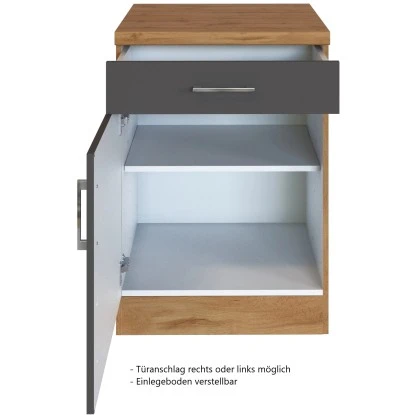 Held Möbel Unterschrank Sorrento 50 X 85 X 60 Cm Tür Schub. + EL-B. Anth.-Wotan.