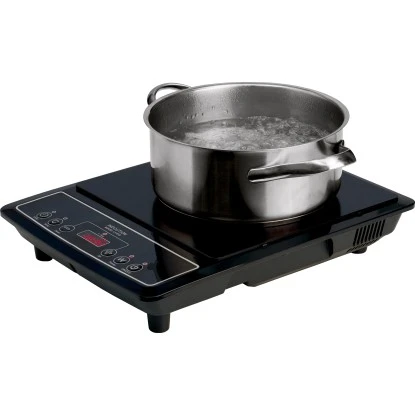 Das Induktionskochfeld mit Druckknopfsteuerung sorgt für die schnelle Erwärmung von Kochgut in ferromagnetischen Töpfen mit einem Ø von 12 cm bis 20 cm. Das Kochfeld verfügt über eine Druckknopfsteuerung und vier digitale LED-Anzeigen. Mit zehn Leistungsstufen ist die Temperatur von 60 °C bis 240 °C regelbar. Die Leistung der Kochplatte beträgt 2000 W. Sie verfügt über einen Überhitzungsschutz und eine automatische Abschaltfunktion, wenn der Topf von der Platte entfernt wird. Zusätzlich gibt es die Möglichkeit das Induktionskochfeld mittels einer Timerfunktion maximal 180 Minuten vorher zu programmieren.