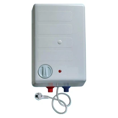 Der 5-Liter Kleinspeicher wird Ihren höchsten, sparsamen Komfortansprüchen gerecht und eignet sich optimal für Handwaschbecken und Küchenspülen. Er ist reversibel, kann als Obertischgerät oder als Untertischgerät angeschlossen werden. Aufgrund seines Stahlkessels ist sowohl eine drucklose als auch eine druckfeste Montage möglich. Eine druckfeste Montage darf nur mit einer Speichersicherheitsarmatur vorgenommen werden. Der Speicher verfügt über Temperatursicherung bei Überhitzung und Überspannungsschutz. Zudem ist das Gerät mit einem Reset-Knopf versehen.