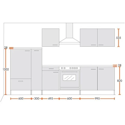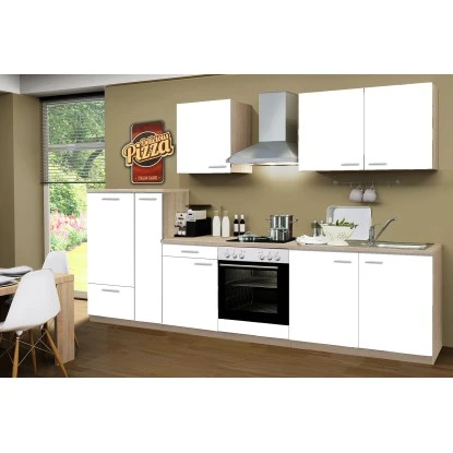 Menke Küchenzeile Classic 300 Cm Weiß Melamin-Sonoma Eiche Nachbildung