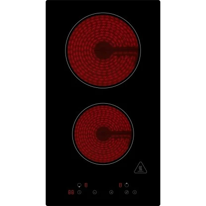 Das Respekta Domino-Glaskeramikkochfeld KM9130T-28 rahmenlos besteht aus 2 Kochzonen. Das hintere Kochfeld hat einen Durchmesser von 190 mm und eignet sich bei einer Leistung von 1.800 W besonders für große Töpfe oder Pfannen. Das vordere Kochfeld hat einen Durchmesser von 155 mm und eine Leistung von 1.200 W. Kleine Mahlzeiten sind mit diesem Glaskeramik-Kochfeld schnell und einfach zubereitet.