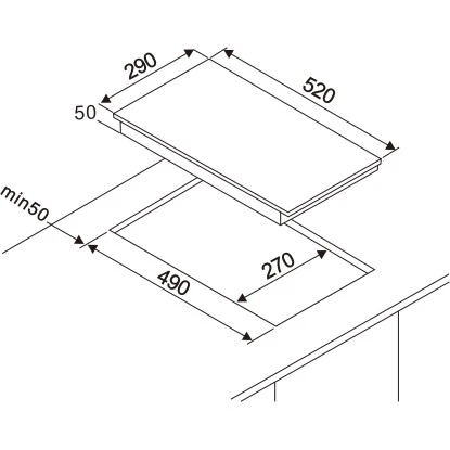Ausschnittmaße Kochfeld (H x B x T): 5 x 27 x 49 cm