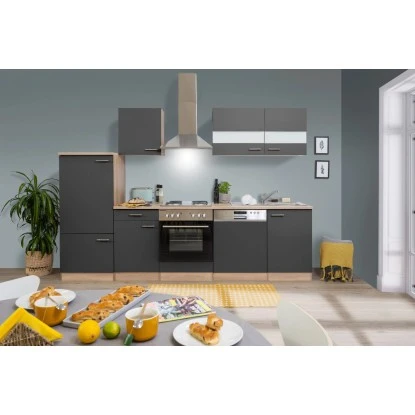 Respekta Küchenzeile KB280ESG 280 Cm Grau-Eiche Sägerau Nachbildung
