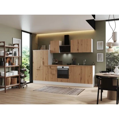 Die Respekta Selection Küchenzeile Elisabeth 310 cm bietet Ihnen alles, was Sie erwarten, um Ihren Traum von einer modernen und funktionalen Küche zu verwirklichen. Mit einer Arbeitshöhe von 91 cm und höhenverstellbaren Sockelfüssen ermöglicht sie Ihnen ein komfortables und ergonomisches Kochen. Dank der Schubkästen und Auszüge mit Vollauszug und Dämpfung, sowie der Glaseinlegeböden bei den Hängeschränken können Sie den Stauraum optimal ausnutzen. Profitieren Sie von der Lieferung fertig montierter Küchenschränke und erhalten Sie eine leistungsstarke und moderne Küchenlösung, die Sie über viele Jahre hinweg begleiten wird.