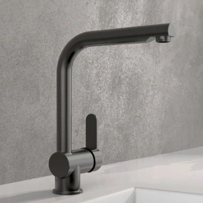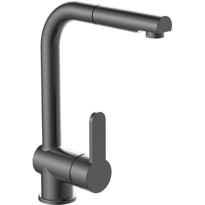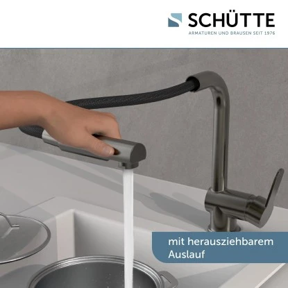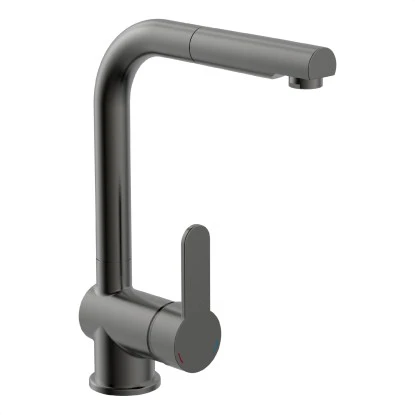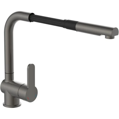 London Spültischarmatur mit Herausziehbarem Auslauf Graphit Matt. Ressourcenschonend handeln auch im Kleinen. Dann ist diese Einhebel-Mischbatterie mit Cold-Start Technik genau richtig, denn sie gewährt bei senkrechter Position des Bedienhebels nur den Zufluss von Kaltwasser. Bei vielen Waschgängen völlig ausreichend.
