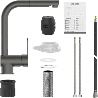 Lieferumfang Ein vollständiges Montageset und eine mehrsprachige, bebilderte Montageanleitung. Die korrosionsbeständigen Anschlussschläuche (400 mm) an das Hauswassersystem sind aus einem flexiblem Metallgewinde und einfach in der Montage.