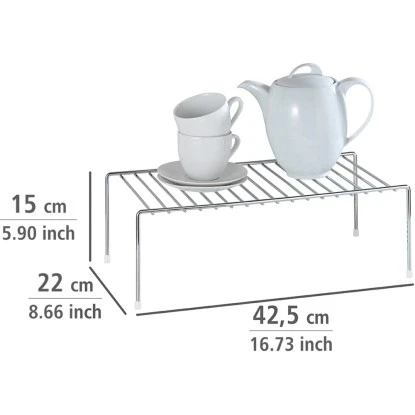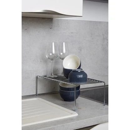 Die praktische Wenko Geschirrablage fügt sich platzsparend auf jeder Arbeitsplatte ein. Das Regal aus glänzendem Chrom bietet viel Stauraum für Geschirr und Kochutensilien oder kleinere Küchengeräte.